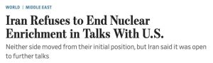 وال استریت ژورنال : ایران در گفتوگوهای غیرمستقیم در عمان، درخواستهای آمریکا برای توقف یا انتقال غنیسازی اورانیوم به خارج از کشور را رد کرد؛ با این حال، دو طرف توافق کردند…