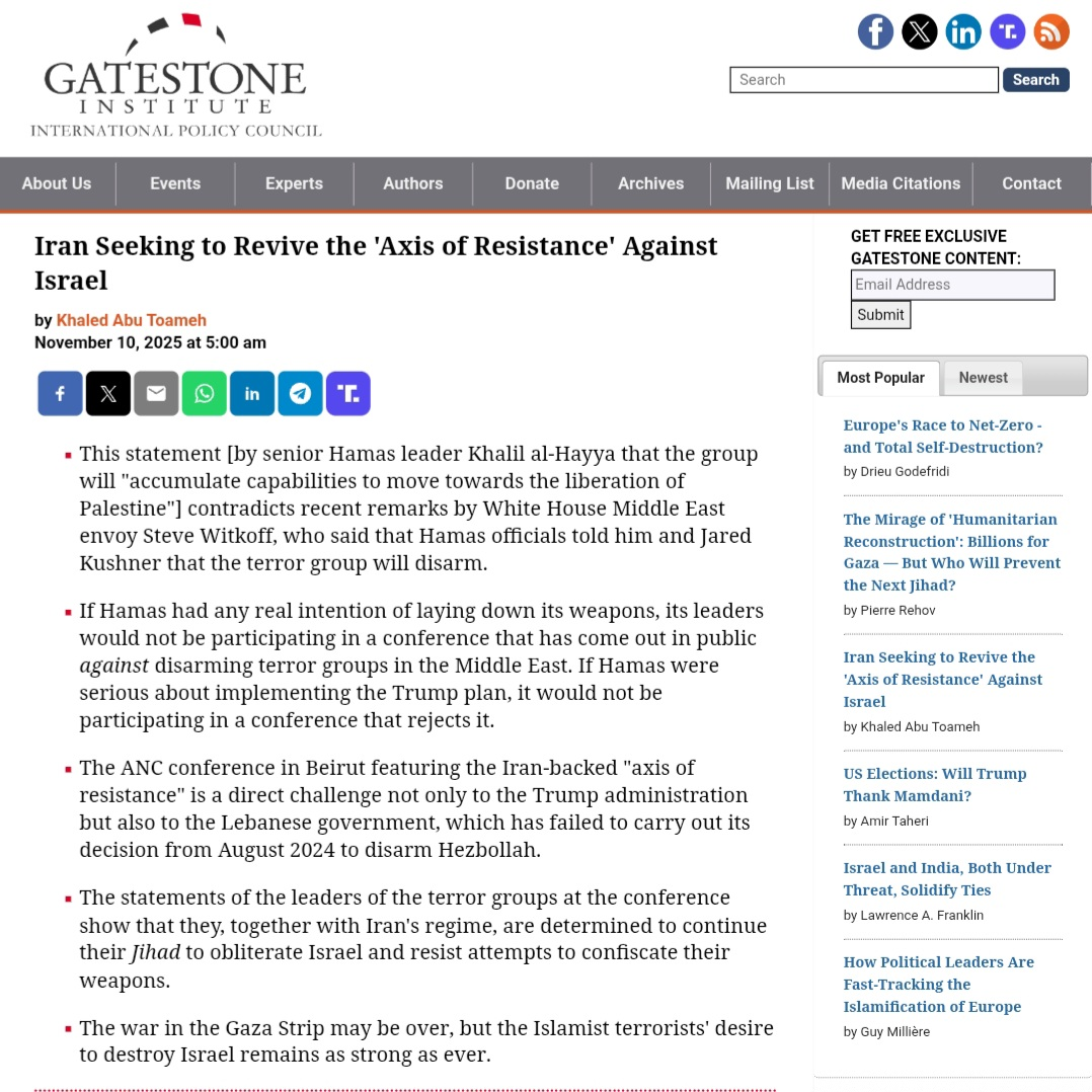 در کنفرانس اخیر در بیروت که توسط گروهی به نام “کنفرانس ملی عربی” برگزار شد، رهبران گروههای تروریستی همچون حماس، جهاد اسلامی فلسطین (PIJ)، حزبالله و حوثیها بر استمرار “مقاومت” و لزوم حفظ سلاحهای خود تأکید کردند.